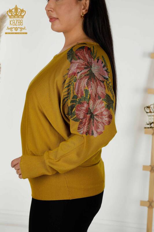 الجملة تريكو المرأة سترة مطرزة حجر الكتف زهرة التفاصيل الجير - 16133 | كازي