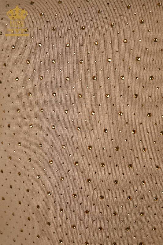 كنزة تريكو نسائية بأكمام قصيرة مطرزة باللون البيج - 16950 | كازي