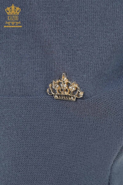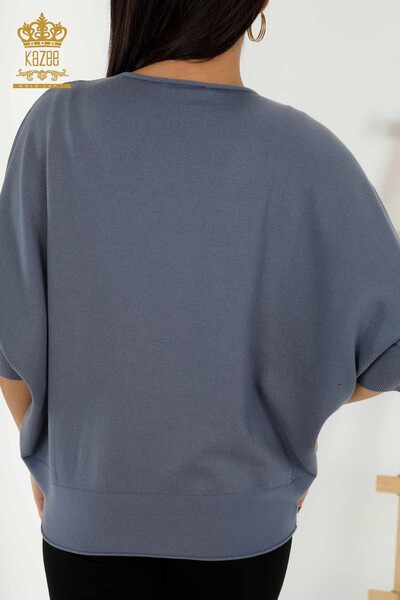 كنزة تريكو نسائية بالجملة بشعار أساسي بأكمام الخفافيش المفتوحة باللون النيلي - 30241 | كازي