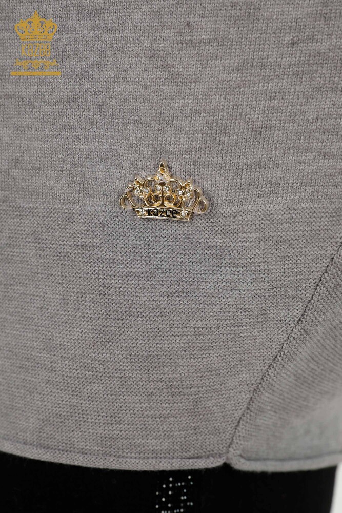 سترة نسائية تريكو نسائية بشعار أساسي بأكمام الخفافيش رمادي - 30241 | كازي