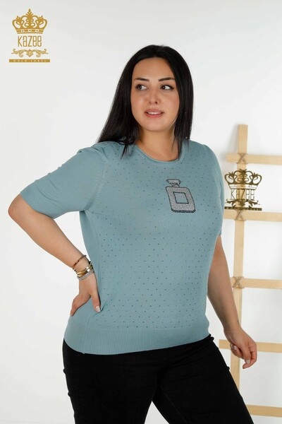 الجملة المرأة سترة تريكو طاقم الرقبة حجر الخردل المطرز - 30027 | كازي