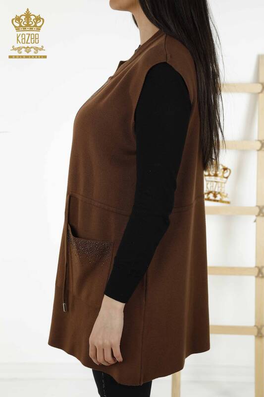 سترة نسائية بالجيب مطرزة بجيب ليوبارد ستون بني - 30308 | كازي