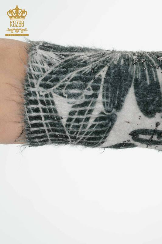 كنزة نسائية بالجملة مطرزة بأحجار الكريستال الأنجورا ديجيتال طباعة بيج - 16006 | كازي
