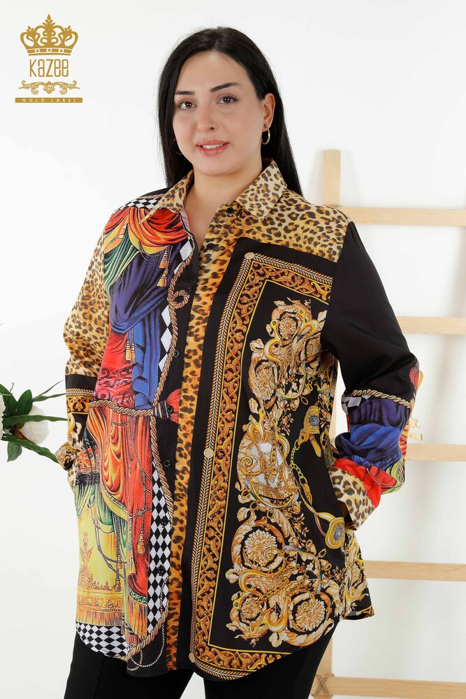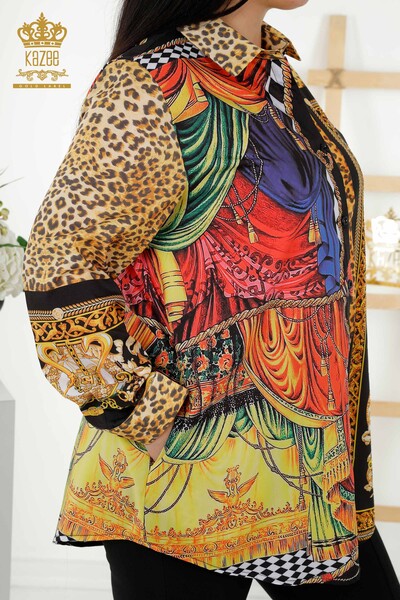 الجملة النسائي القميص الرقمي المطبوع بالأحجار المطرزة - 20357 | كازي