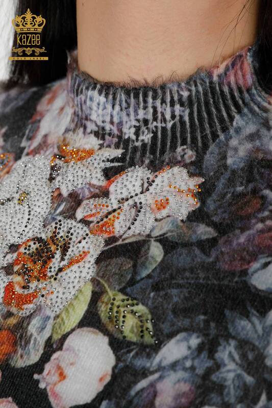 سترة نسائية تريكو نسائية بالجملة مطرزة بأحجار الكريستال المطرز بأنجورا ديجيتال طباعة مينك - 18997 | كازي