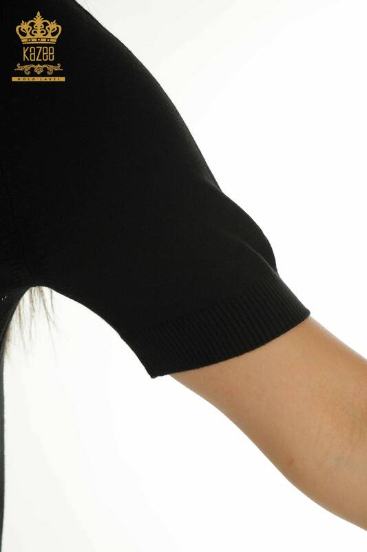 سترة تريكو نسائية بالجملة حجر مطرز أسود - 30659 | كازي