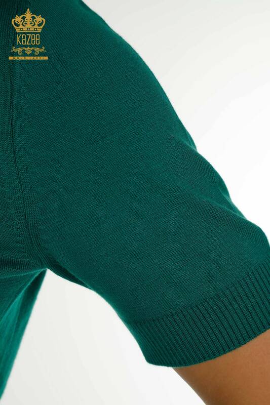 سترة تريكو نسائية بالجملة موديل أمريكي أخضر أساسي مع شعار - 14541 | كازي