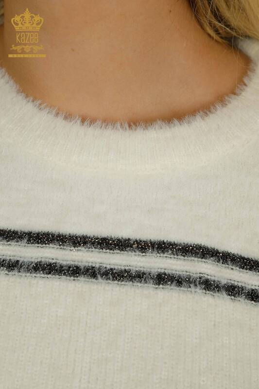 الجملة المرأة سترة تريكو مخطط الأنجورا بريق الانتقال Ecru - 30680 | كازي