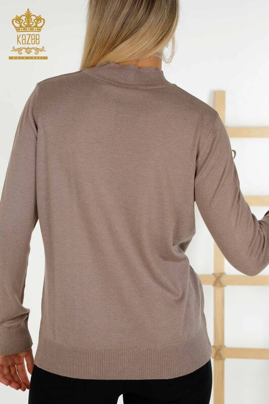 الجملة المرأة سترة تريكو عالية الياقة المنك الأساسية المفتوحة - 16663 | كازي