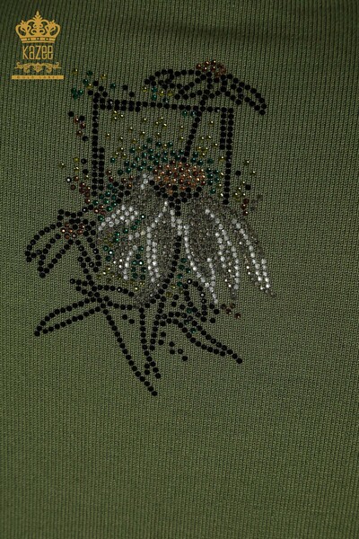 الجملة المرأة سترة تريكو زهرة مطرزة حجر مطرز كاكي - 30612 | كازي
