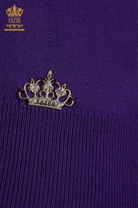 الجملة المرأة سترة تريكو كم طويل الشعار الأساسي الخامس الرقبة الأرجواني - 11071 | كازي