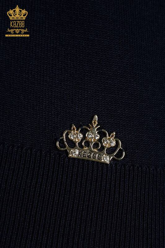 الجملة المرأة سترة تريكو كم طويل الشعار الأساسي الخامس الرقبة الأزرق الداكن - 11071 | كازي