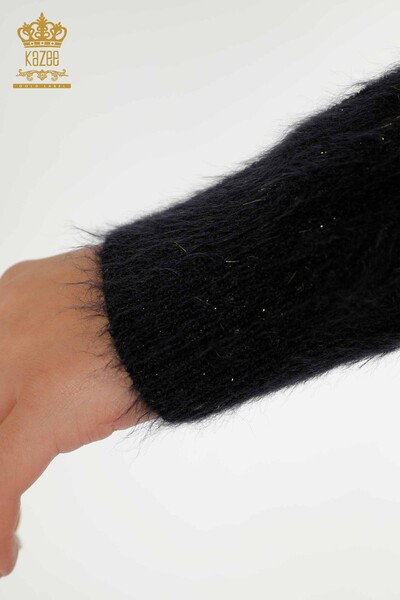 الجملة المرأة سترة تريكو الأنجورا منقوشة الياقة المدورة الأزرق الداكن - 19067 | كازي
