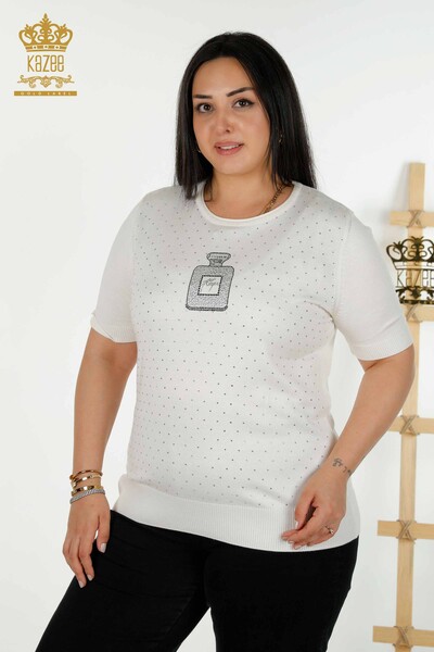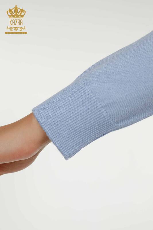 الجملة المرأة سترة تريكو الرقبة طاقم الحجر المطرز الأزرق - 30027 | كازي