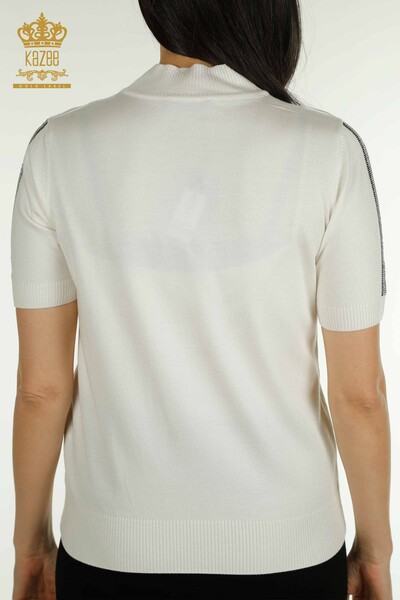 الجملة المرأة سترة تريكو عالية الياقة حجر مطرز قصير الأكمام إكرو - 30642 | كازي