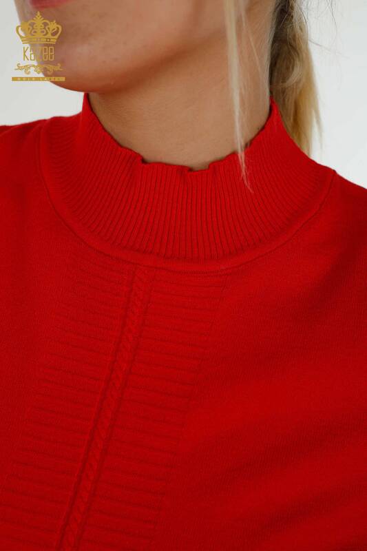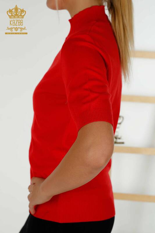 الجملة المرأة سترة تريكو الأساسية قصيرة الأكمام الوقوف الياقة الحمراء - 30334 | كازي