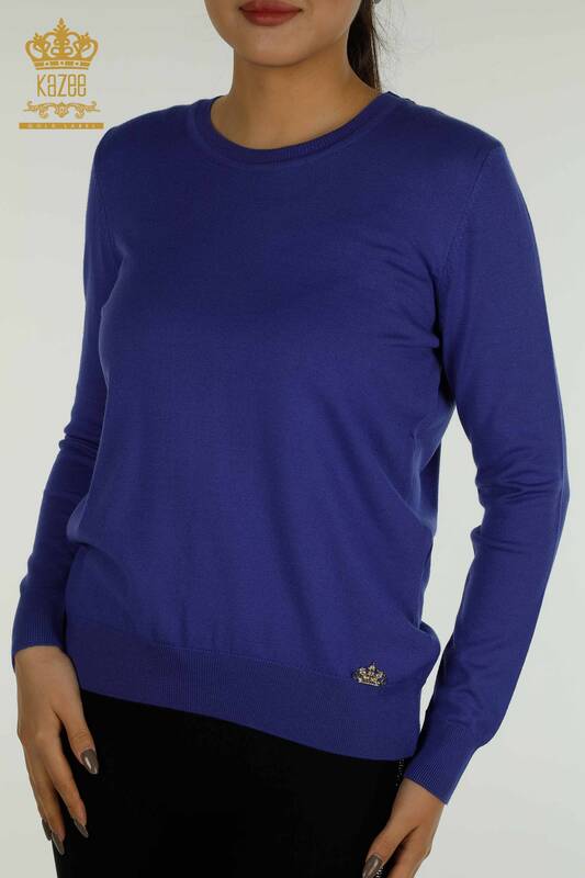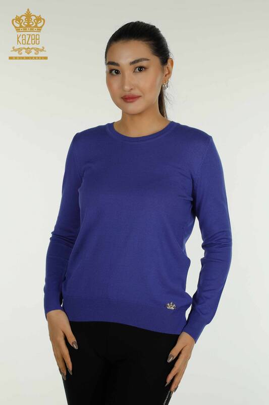 الجملة المرأة سترة تريكو الأساسية الشعار طاقم الرقبة البنفسجي - 11052 | كازي