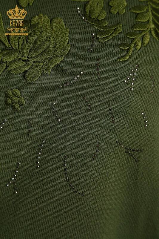 ملابس تريكو نسائية بالجملة مطرزة بالزهور وأكمام طويلة كاكي - 16849 | كازي