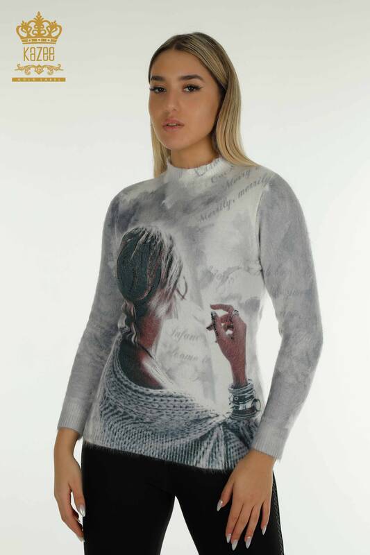 سترة تريكو نسائية بالجملة مطرزة بحجر الأنجورا رقمي - 40031 | كازي