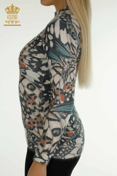 سترة تريكو نسائية بالجملة مطرزة بحجر الأنجورا رقمي - 40034 | كازي