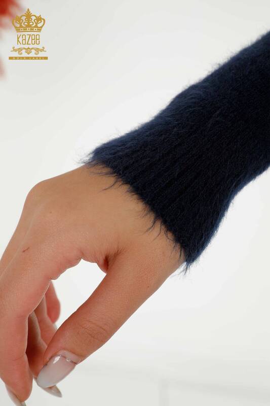 الجملة سترة تريكو نسائية مع شعار الأنجورا الأساسية الأزرق الداكن - 18432 | كازي