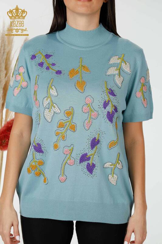 ملابس تريكو نسائية موديل أمريكي ستون مطرز بالنعناع - 16753 | كازي