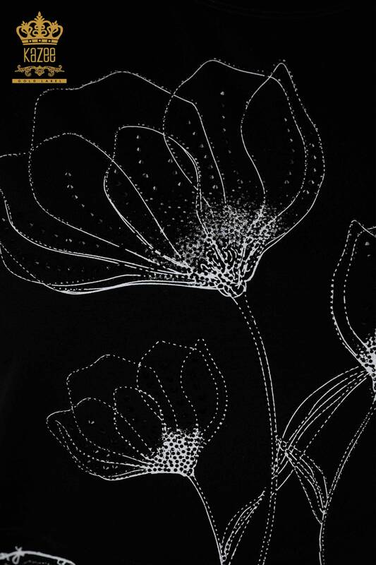 بلوزة نسائية - بنمط مورد - مطرز اسود - 79059 | كازي