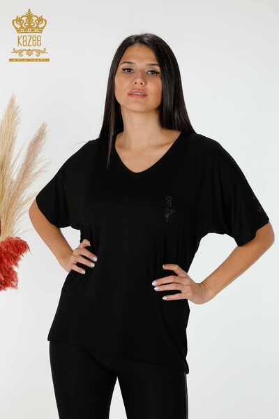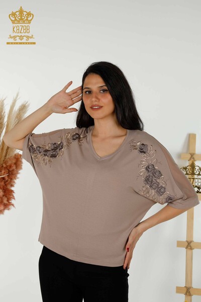 بلوزة نسائية بالجملة مطرزة بأحجار اليعسوب باللون الوردي - 79362 | كازي