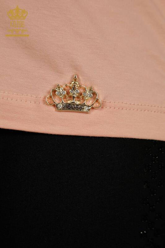 بلوزة نسائية للبيع بالجملة موديل أمريكي بشعار أساسي بودرة - 79177 | كازي