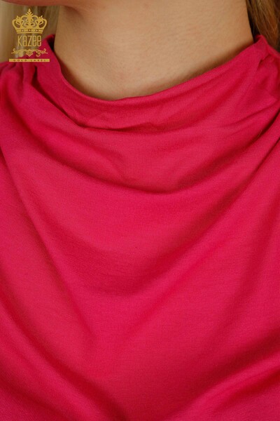 بلوزة حريمي بالجملة بدون أكمام بشعار فوشيا - 79312 | كازي