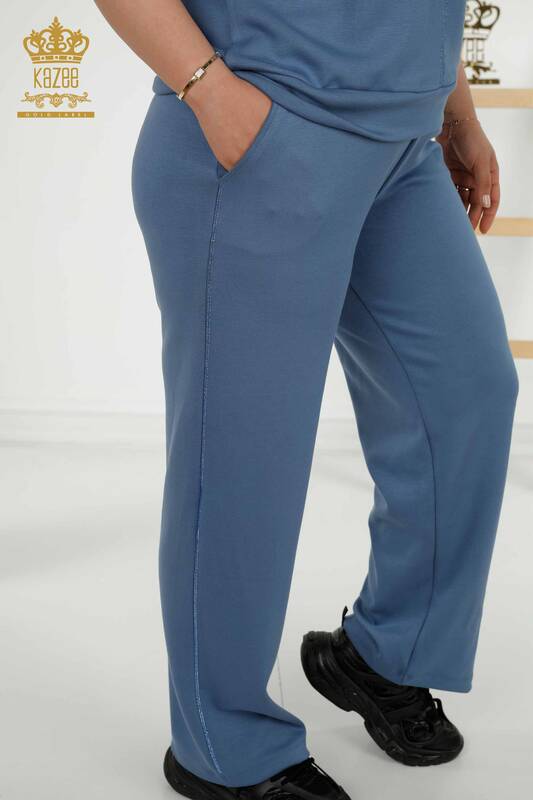 بدلة رياضية نسائية بالجملة مطرّزة بالجيب بأكمام قصيرة نيلي - 20391 | كازي