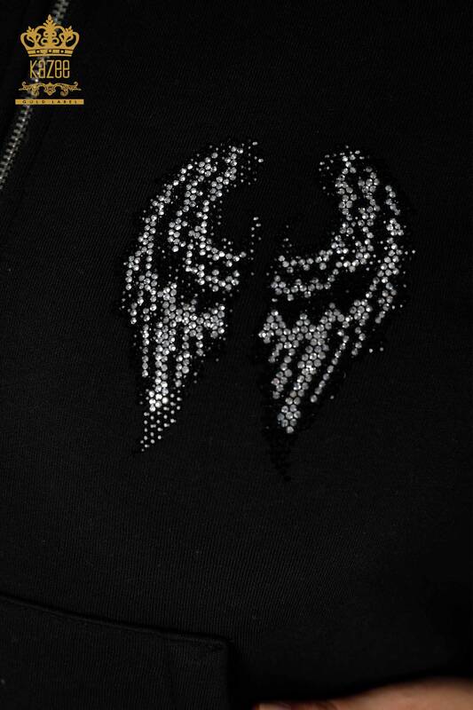 بدلة رياضية نسائية للبيع بالجملة بنمط جناح الملاك حجر كريستال مطرز أسود - 17466 | كازي