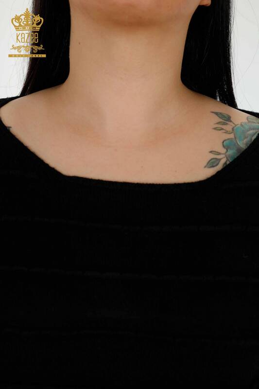 تريكو نسائي بالجملة محبوك بياقة دائرية سوداء - 30169 | كازي