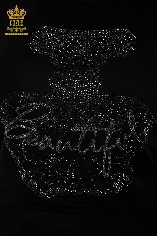 Camicetta da donna all'ingrosso Flamingo Patterned Stone Ricamato Tulle Detailed Black - 78866 | KAZEE