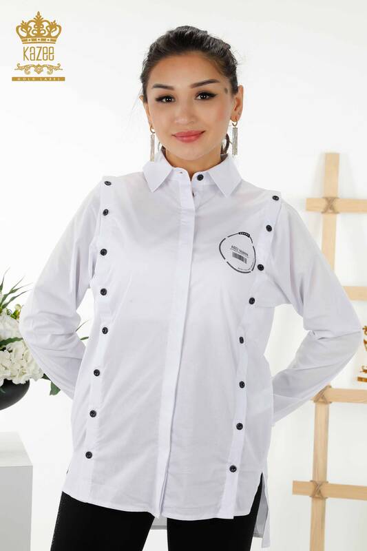 Commercio all'ingrosso Bottone della camicia da donna Testo dettagliato Bianco dettagliato - 20328 | KAZEE