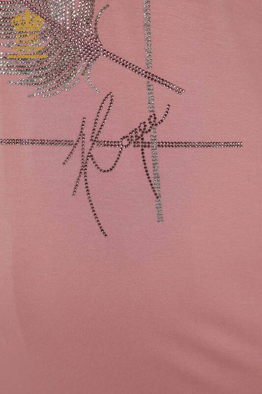 Camicetta da donna all'ingrosso con motivo a foglia ricamata in pietra rosa appassita - 78878 | KAZEE