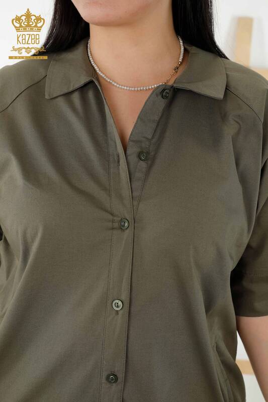 Commercio all'ingrosso Abito camicia da donna con motivo a catena Pocket Khaki - 20379 | KAZEE