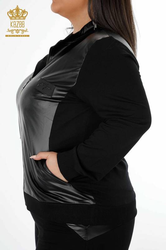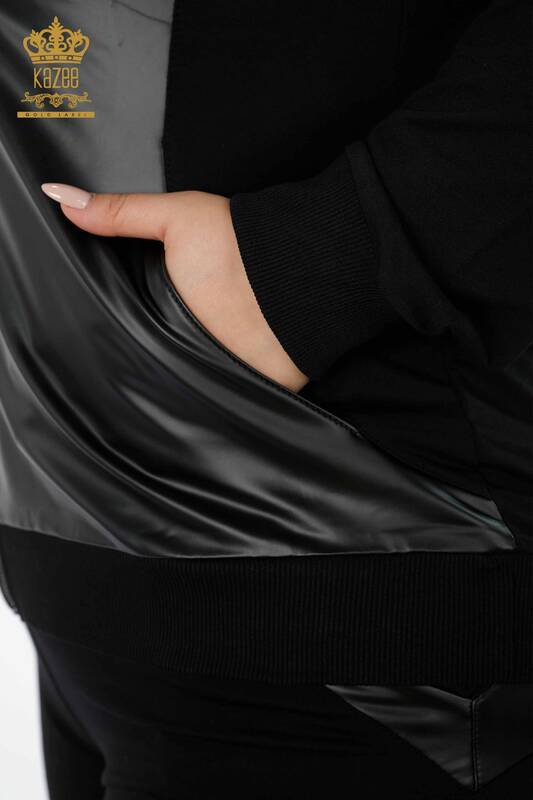 Tuta da donna all'ingrosso Set in pelle Tasca con cerniera nera dettagliata - 17337 | KAZEE