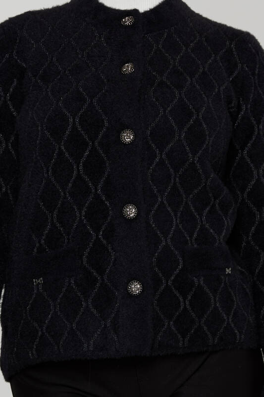 Cardigan angora cu sclipici cu nasturi negru - 30817 | KAZEE (Set de 4 M-L-XL-2XL)