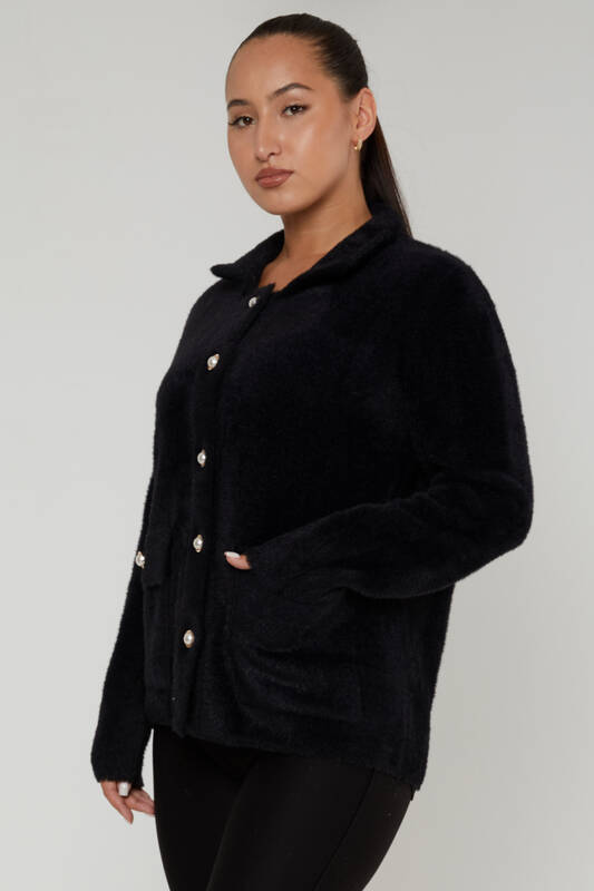 Angora-Cardigan mit Perlenknopftasche Schwarz - 30756 | KAZEE (3er-Set M-L-XL)