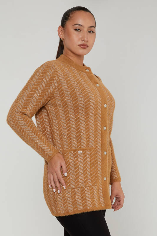Angora Cardigan Pocket Detail Buttoned Mink - 30816 | KAZEE (Set of 4 L-XL-2XL-3XL)