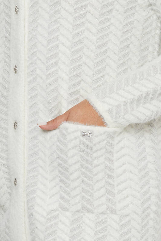Angora-Cardigan mit Taschendetails, geknöpft, Ecru – 30816 | KAZEE (4er-Set L-XL-2XL-3XL)