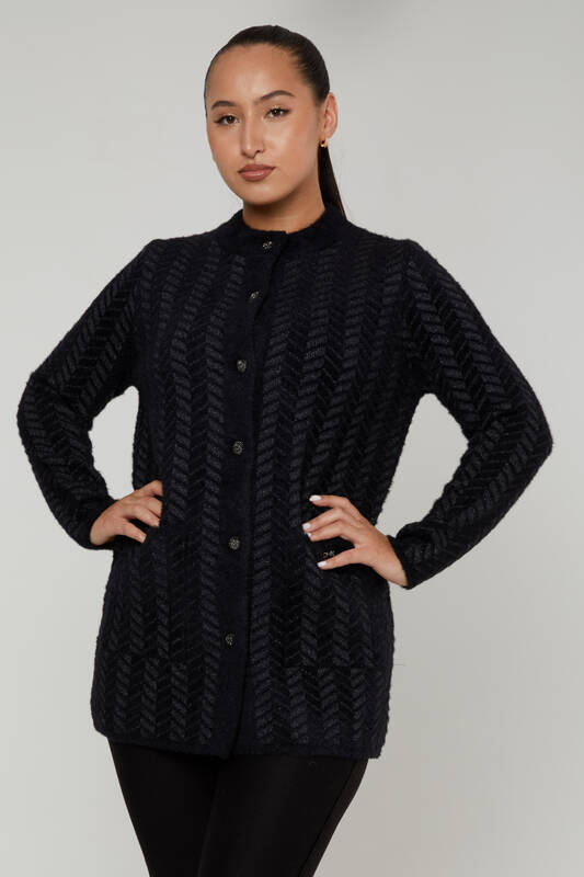 Angora Cardigan Pocket Szczegółowo zapinany na guziki w kolorze czarnym - 30816 | KAZEE (zestaw 4 sztuk L-XL-2XL-3XL)