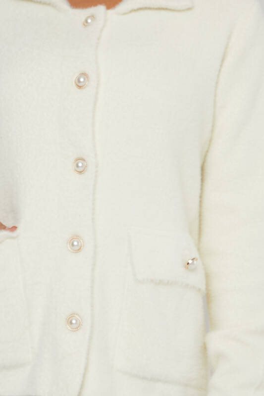 Kardigan Angora z perłowymi guzikami i kieszeniami Ecru - 30756 | KAZEE (zestaw 3 sztuk M-L-XL)