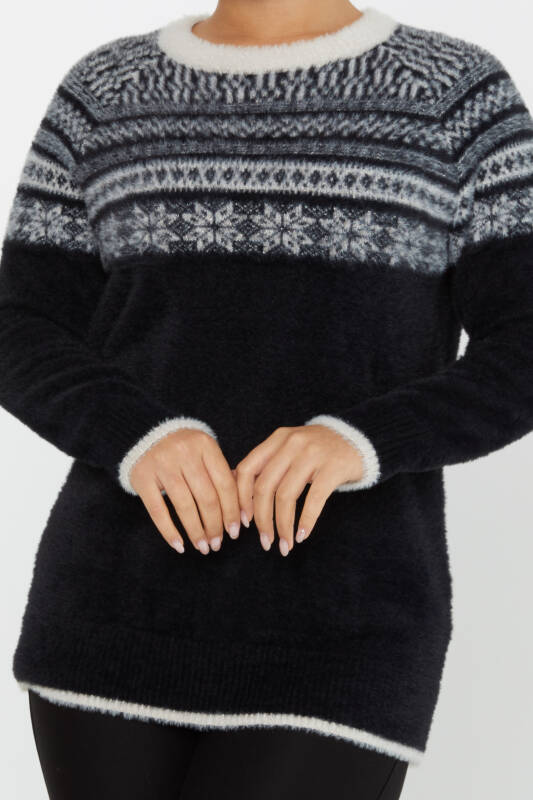 Angora Sweater Patterned Long Sleeve Black-Ecru - 30682 | KAZEE (Set of 3 S-M-L)