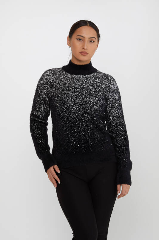 Angora Knitwear Color Transitional Stand Collar Black - 31180 | KAZEE (Set of 4 M-L-XL-2XL)