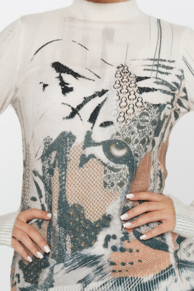 Angora Knitwear Tiger Patterned Stone Haft Ecru - 50002 | KAZEE (zestaw 2 sztuk S-M)