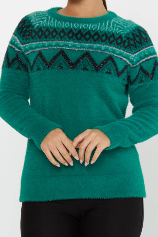 Angorapullover Gemustert Langarm Grün - 30682 | KAZEE (3er-Set S-M-L)