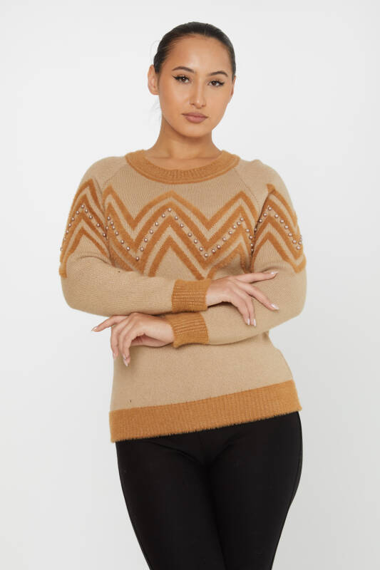 Angorapullover mit Perlenstickerei, langärmelig, Braun – 30232 | KAZEE (3er-Set S-M-L)