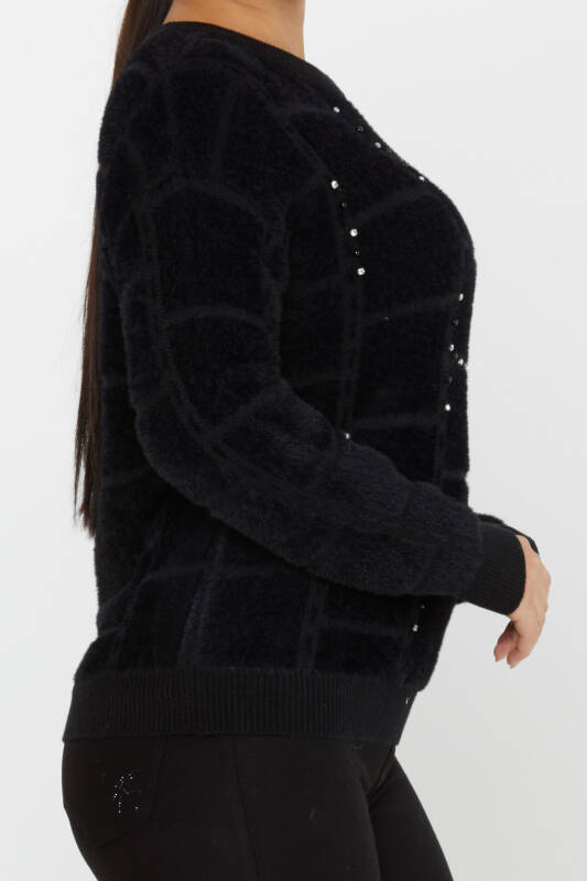 سویشرت آنگورا سنگ دوزی یقه مشکی - 30209 | KAZEE (مجموعه 3 S-M-L)